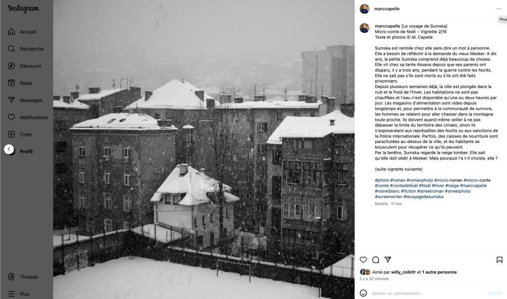 Comme annoncé « sur les réseaux », je vais vous raconter comment et pourquoi j’ai fabriqué Le voyage de Sumska, mon conte de Noël publié le 1er décembre sur Instagram. Pour faire sérieux, appelons cela un making-of.