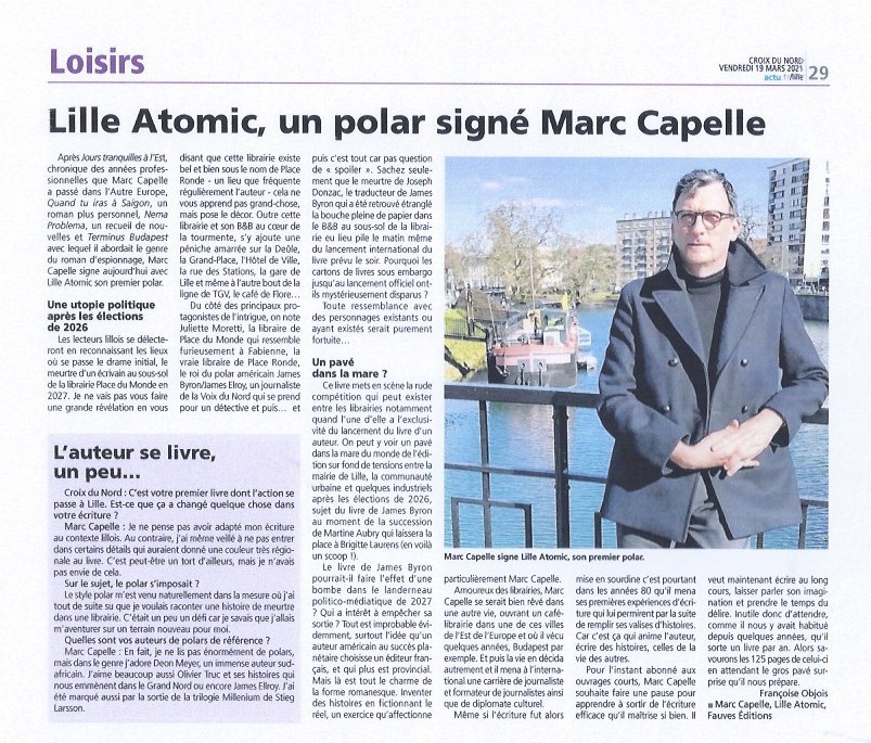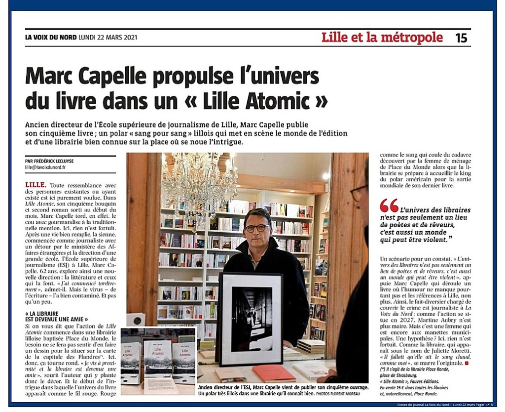 La Voix du Nord (16 mars 2021) Marc Capelle propulse l’univers du livre dans un « Lille Atomic »