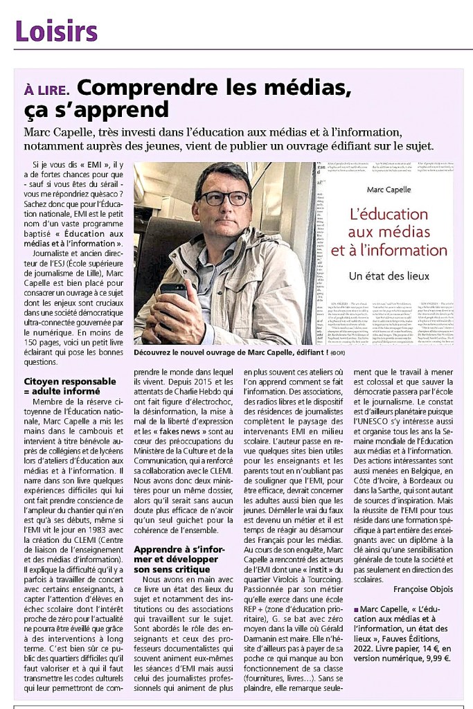 Lille Actu (6 septembre 2022). Dans son dernier ouvrage, Marc Capelle dresse un état des lieux sur l’éducation aux médias